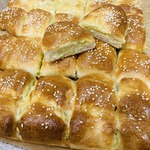 Готовила половину нормы. Прошу прощения, но начинка у меня сладкая - яблочный мармелад. Я стараюсь ограничивать себя в выпечке, поэтому большую часть заморожу. Не знаю как картофельная начинка прведет себя после заморозки, решила не рисковать.