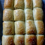 К желтку добавить 1 ч. л. растительного масла и смазать пирожки. Посыпаем по желанию кунжутом или маком, убираем в разогретую до 175 градусов духовку на 30 мин.