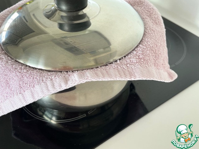 Через 25 мин убираем с огня, открываем крышку, накрываем полотенцем и сверху закрываем крышкой. Оставляем на 15-20 мин.