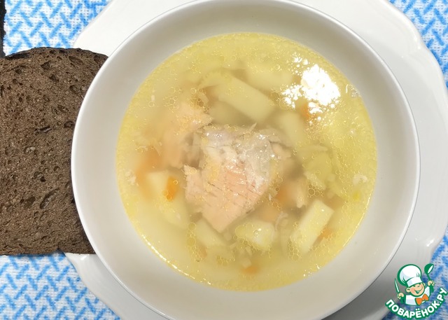 К почти готовым овощам, добавьте готовый дикий рис, влейте процеженный бульон. По необходимости посолите. Доведите содержимое кастрюли до кипения. Нагрев выключите, дайте супу настояться минут 15-20. Разберите остывшие рыбные головы: отделите мякоть рыбы от кожи и костей.
