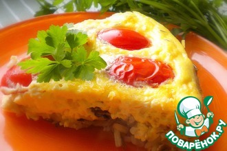 через 10 минут засыпать им омлет и отправить ещё на 10 мин. допекаться -