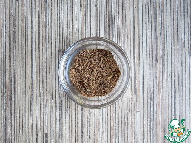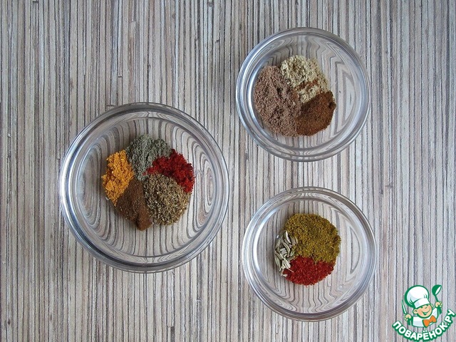 Я смешала 1 ч. л. с горкой корицы, 0,5 ч. л. имбиря, 1/3 ч. л. мускатного ореха, 1/4 ч. л. куркумы, 1/4 ч. л. черного перца, 1/4 ч. л. гвоздики, 1/4 ч. л. кориандра, 1/4 ч. л. жгучего перца, 1/5 ч. л. паприки и 1/5 ч. л. шафрана и 1/5 ч. л. фенхеля. По рецепту нужно взять 1 ч. л. этой смеси.