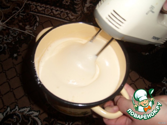 Из 8 охлажденных белков, 0,7 стак. сахарного песка, 2 ст. л. пудинга взбиваем безе.