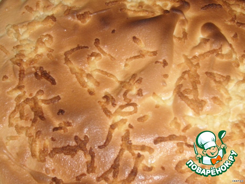 Начинку делаем из 900 гр творога, неполного стакана сахарного песка, полпачки маргарина «Пышка», 1 яйца.