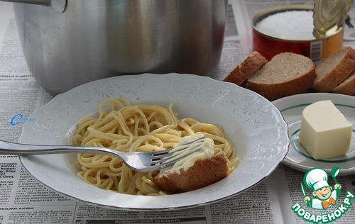 "Афоняяяя!!! Афон, друг!!! Гони рубль, родственник! Мне Афоня рубль должен!! " Эту фразу Федула, из комедии Георгия Данелии - "Афоня", слышали и знают практически все... В этом фильме есть сюжет завтрака двух холостяков: Афони и Коли (которого сыграл Евгений Леонов), состоящий из макарон, заботливо сваренных Николаем, ржаного хлеба и сливочного масла. Я попыталась повторить этот завтрак, но хлеб я решила спечь из трех видов муки и не совсем обычным способом - в пакете... И сами макароны я немного "сдобрила" бульонными кубиками и российским сыром, чтобы чуть-чуть было вкуснее и сытнее, чем героям известной комедии.