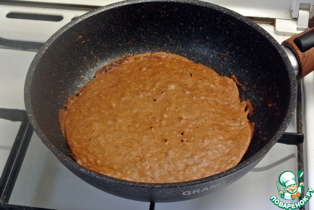 Разогретую сковороду слегка смазать растительным маслом. Вылить одну порцию теста.
