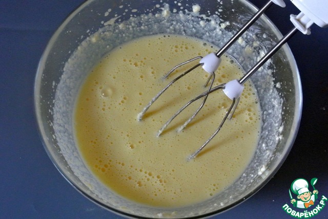 Взбить миксером или погружным блендером. Я взбивала миксером.