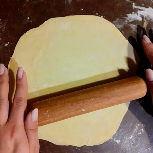 Тесто: смешать муку, яйца, соль и 100мл воды. Замесить крутое тесто.