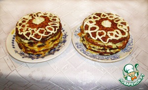 Желательно не делать тортик очень высоким: 3-4 блина достаточно.