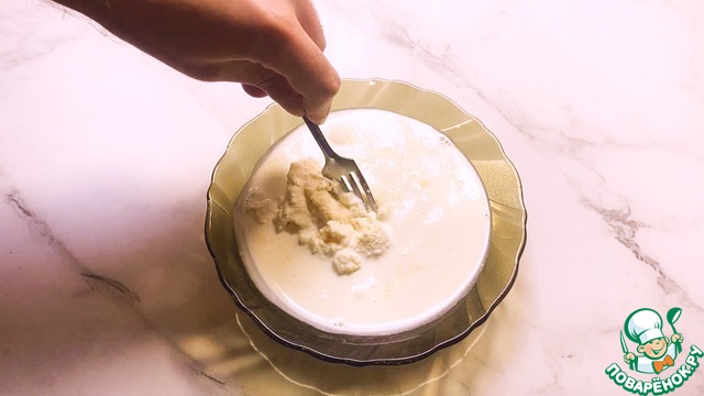 Затем в тарелку отправляем желатин, заливаем его сливками и оставляем набухнуть.
