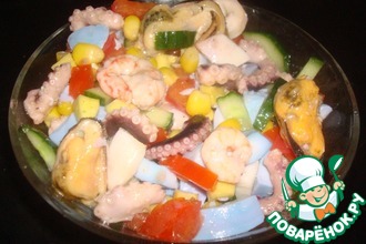 Полить салат и снова очень аккуратно, чтобы не помять нежные листья салата, перемешать.