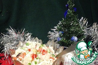 Знаю, сейчас в меня полетят тапки: крабовые палочки! Фу!!! Не скажу, что мы очень уж любим крабовые палочки, но муж, иногда просил приготовить закуску или салат с ними. Однажды и родился такой вариант салата.