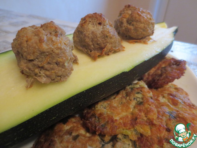 Фишки добавления кабачков наша семья не оценила, т.к. разницы не почувствовала между привычными и этими тефтелями. Кабачки ничего не испортили, но и ничего не дали (но цель уничтожить хотя бы малую часть запасов дачных кабачков выполнена была успешно).