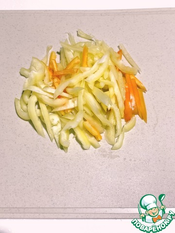 Перец нарезаем соломкой.