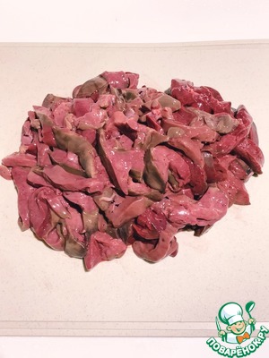 Печень нарезаем брусочками толщиной около 1 см.