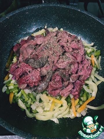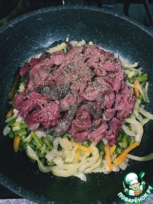 Добавляем перец и обжариваем ещё пару минут.