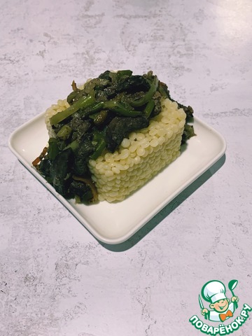 Отвариваем гарнир. У меня это макароны птитим, можно любые другие или гречу или рис 😉