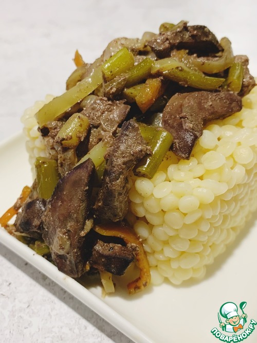 Рецепт «Куриная печень с чесночными стрелами»: