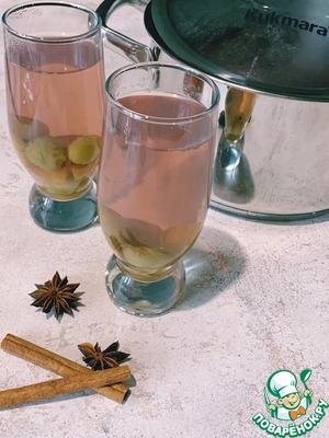 Когда закипит добавляем виноград и сливу, после закипания специи убираем. Варим 3-5 минут.