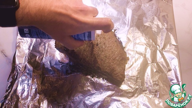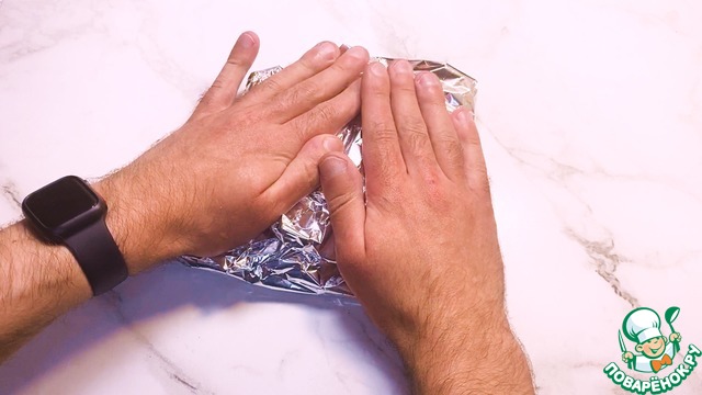 Заворачиваем и отправляем в духовой шкаф при 100 градусах на 15 минут.