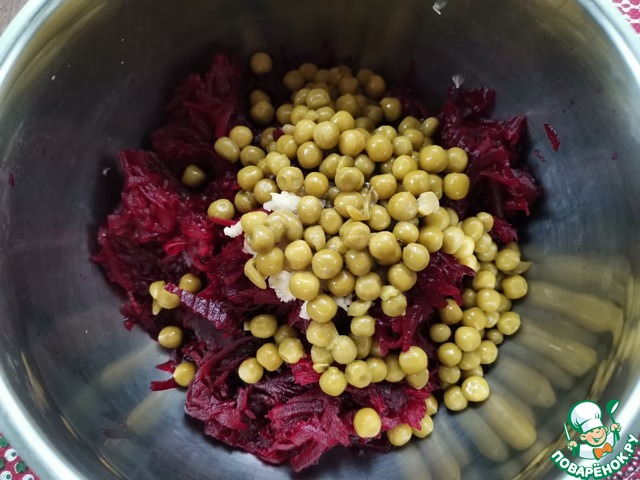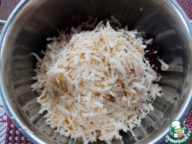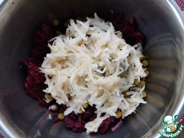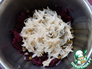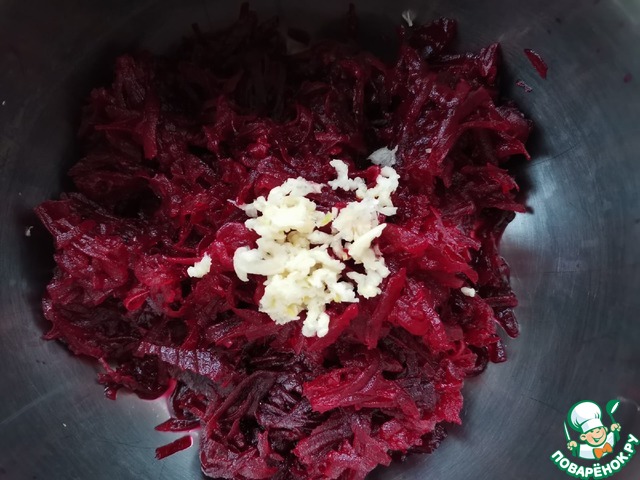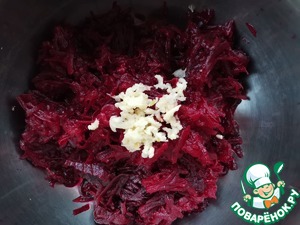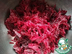 Свёклу отварить, остудить и натереть на крупной тёрке.