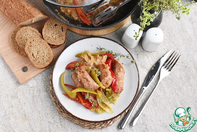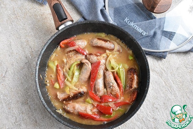 Рецепт «Колбаски с перцем в пикантном яблочном соусе»: