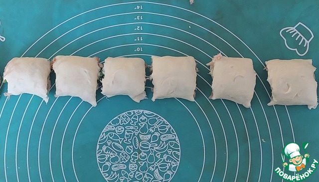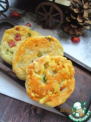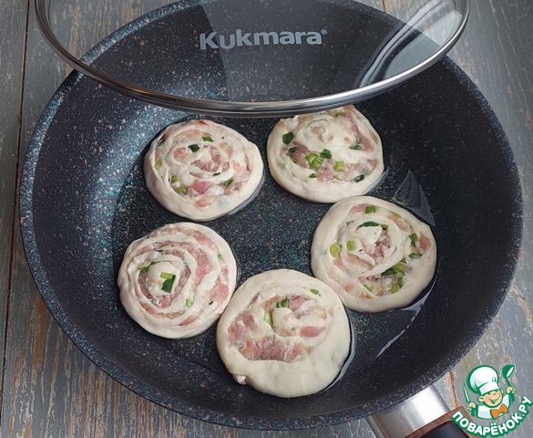 [+5]Начинка у меня другая - сыр, лук зелёный, колбаса. Заинтересовала формовка и тесто.