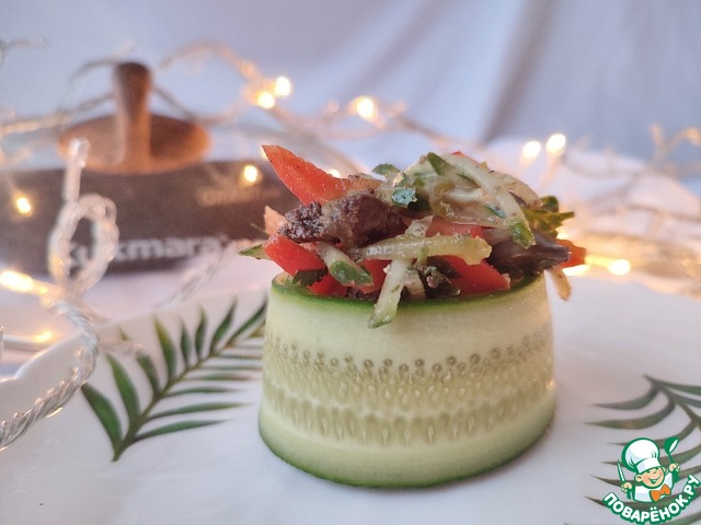Не всегда новогоднее застолье бывает масштабным, зачастую мы отмечаем в узком кругу семьи, готовим не сложные, быстрые блюда (очень актуально при нехватки времени). Предлагаю простой и быстрый в приготовлении рецепт салата. Печень придаст сытность, овощи - лёгкость и сочность.