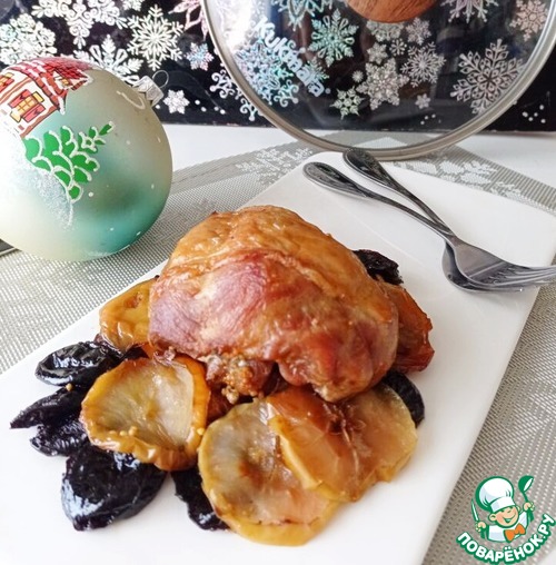 Рецепт «Голень индейки с яблоками и черносливом»: