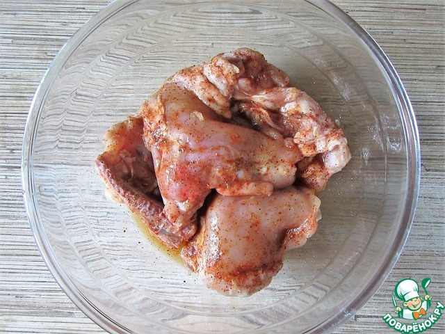 С курицы снять кожу. С половины апельсина и кружка лимона выжать сок, добавить сироп агавы, перемешать. Отдельно смешать паприку, шафран, соль и перец.