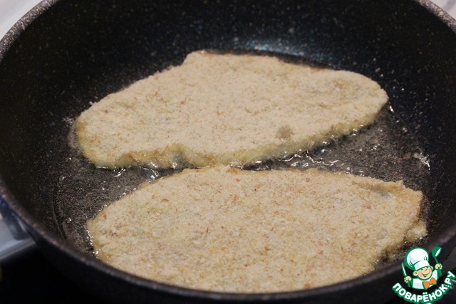 В разогретое масло выложить отбивные и обжарить их с двух сторон по 2-3 минуты, до готовности.