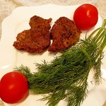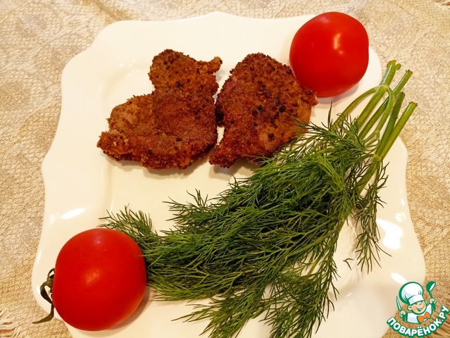 Готовые две отбивные выложить на тарелку, застеленную бумажным полотенцем, чтобы оно впитало лишнее масло.
