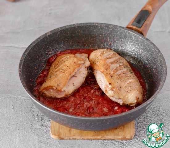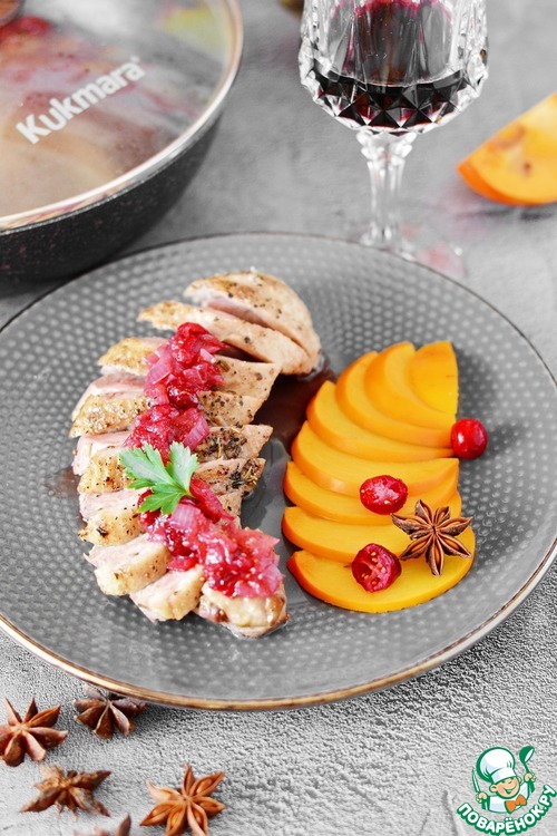 Рецепт «Утиная грудка с луком и клюквой»: