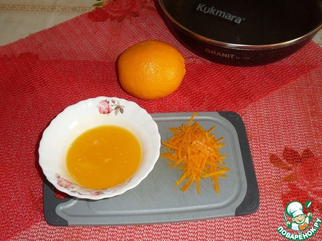 Апельсин хорошо промываем, снимаем цедру и выжимаем сок.
