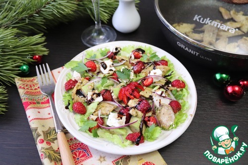 Легкий салатик на праздничный стол. Вкусно, сочно, необычно. Сочетание куриного мяса и клубники очень приятное.