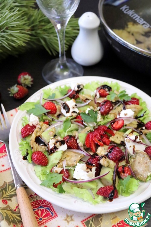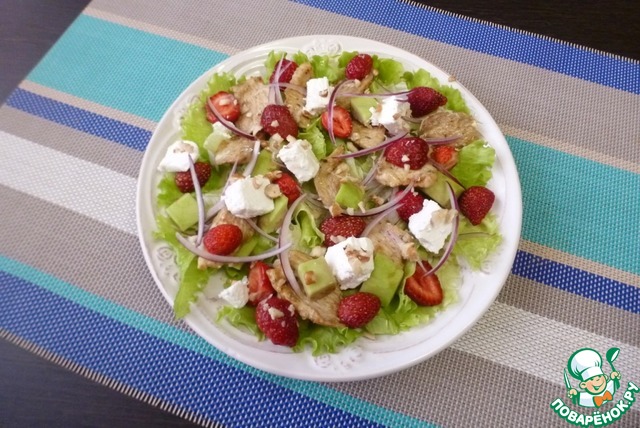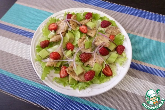 Рецепт «Салат из курицы, авокадо и клубники»: