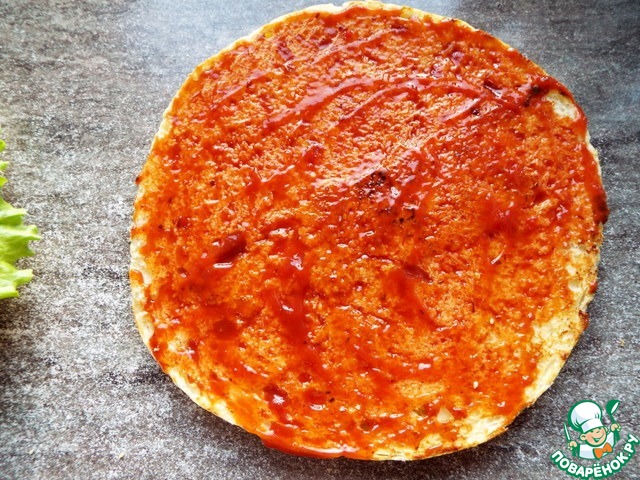Желательно подсушить обе части булки (на разрезе) на гриле или сковороде (если есть такой размер).