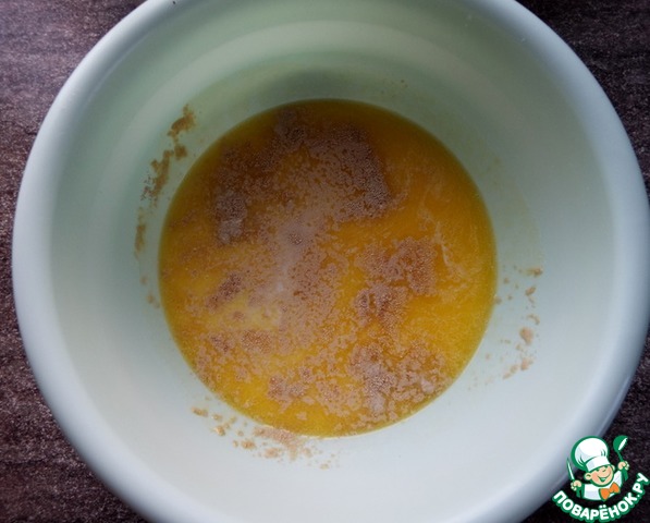Воду и молоко подогреть до слегка тёплого состояния. Добавить растопленное масло, дрожжи и сахар. Оставить на 10 минут.