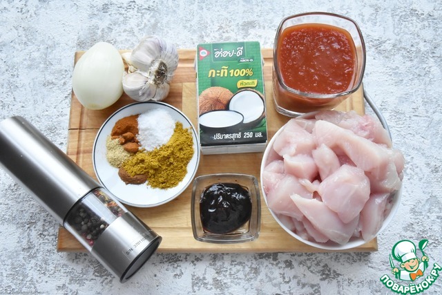 Готовлю продукты для приготовления карри. Вместо соуса Пассаты можно взять томаты в собственном соку, предварительно их измельчив.