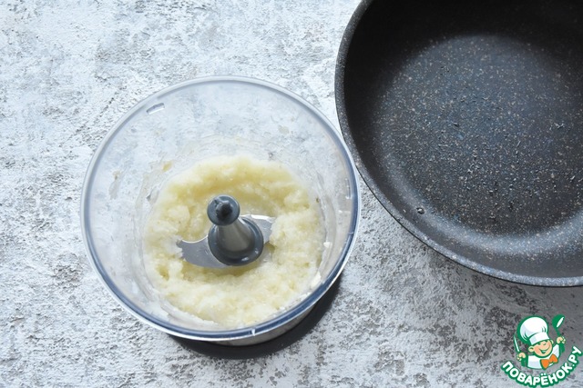 Лук. имбирь и чеснок измельчаю в блендере. В таком состоянии они придадут соусу бархатистую текстуру.