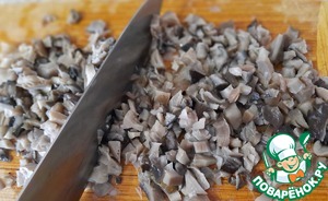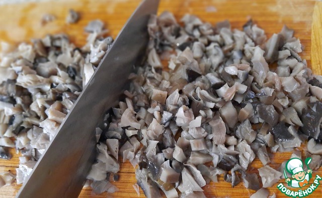 Вешенки в этом году я собирала сама. Люблю лес, гулять с корзинкой и собирать грибы! Грибочки я отварила и убрала в морозилку до нужного момента. Фото с моего архива.
