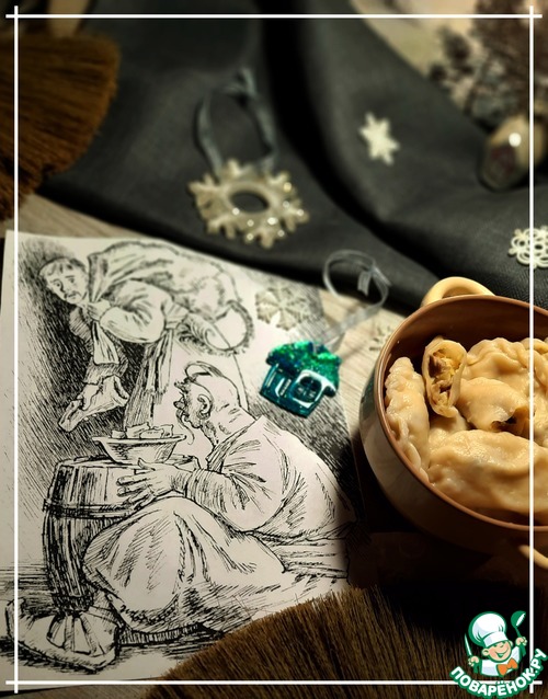 Помните незабываемою картину из замечательной работы Николая Васильевича Гоголя «Ночь перед Рождеством»? Момент, который навсегда запомнился мне- герой комедии Пацюк ел вареники особым способом. Он глазами заставлял каждый вареник прыгать в миску со сметаной и за тем... вареник отправлялся прямо в рот. Способ, которому остается только завидовать. Аппетит у него был отменный! Глядя на Пацюка вареников хочется сразу и много. А что же и нам мешает их приготовить? Сегодня у меня магические вареники Пацюка)
