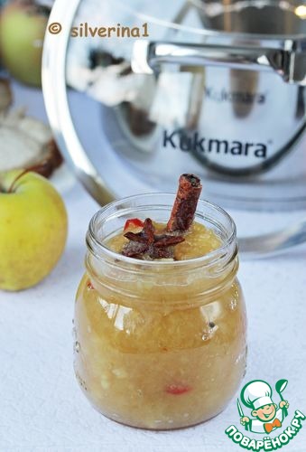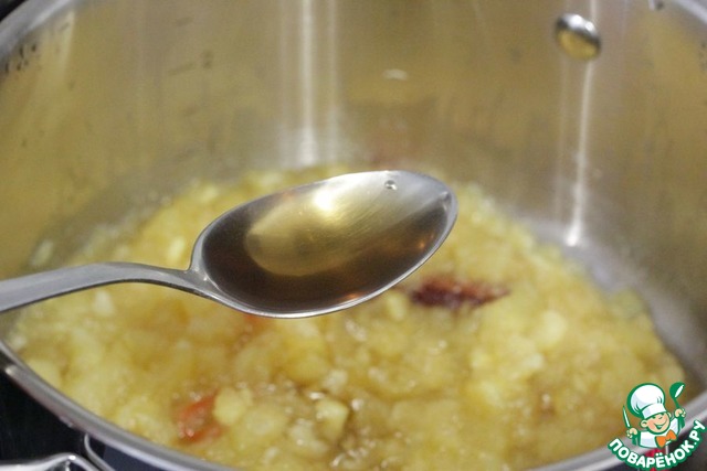 Он получается густой, немного неоднородной текстуры, т. к. часть яблочных кубиков не разваривается. При желании его можно пробить блендером, но мне он нравится как есть.
