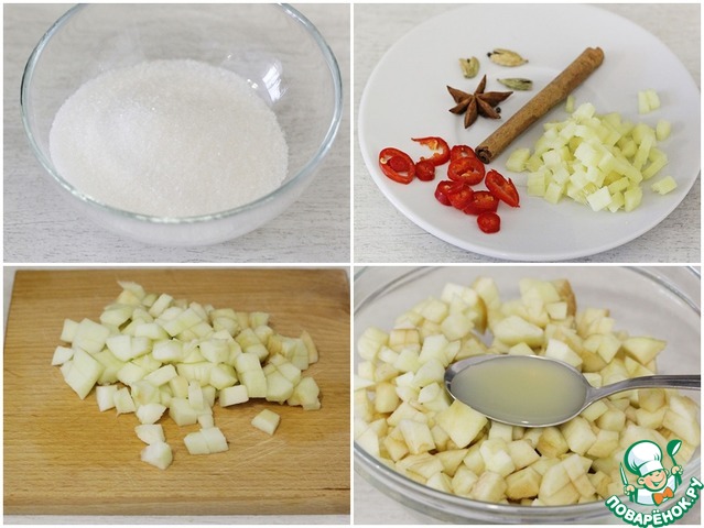 Подготовить специи – звёздочку бадьяна, палочку корицы и коробочки кардамона (их нужно раздавить). Имбирь нарезать на мелкие кубики, острый перчик – на колечки. Перца, кстати, можно взять и целый стручок, если вы любите острое.