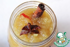 Слушай, я не измеряла... Вот эта баночка, что на фото + остатки опробовали сразу, там где-то половина от баночки была, по-моему. Короче, я всегда примерно так прикидываю: какой вес - столько примерно и получится. Тут сахара мало, воды нет, яблоки чистятся, значит, будет где-то 400-450 г.