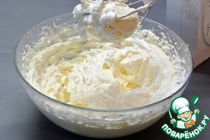 Для крема в творожный сыр влить сливки и всыпать сахарную пудру.