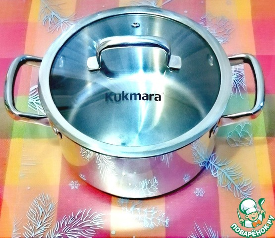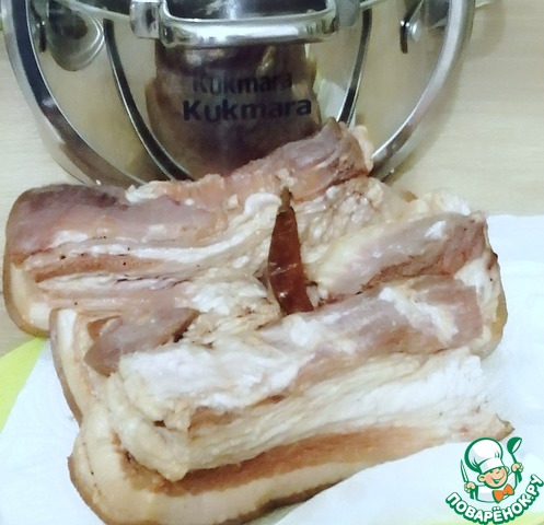 Варится сало совсем не долго, но для хорошего результата надо, чтобы оно дольше полежало в горячем (не кипящем) рассоле. Для этого понадобится кастрюля с толстыми дном и стенками. Конечно же, кастрюля из высококачественной нержавеющей стали из коллекции LEON от бренда Kukmara - идеально подходит для этого, она долго сохраняет тепло. Высокое качество стали позволяет долго хранить и сохранять вкусовые качества еды. В этой кастрюле можно готовить на всех видах плит.