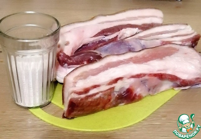 - Сало (любое свиное сало, пригодное для засолки) — 1500 г