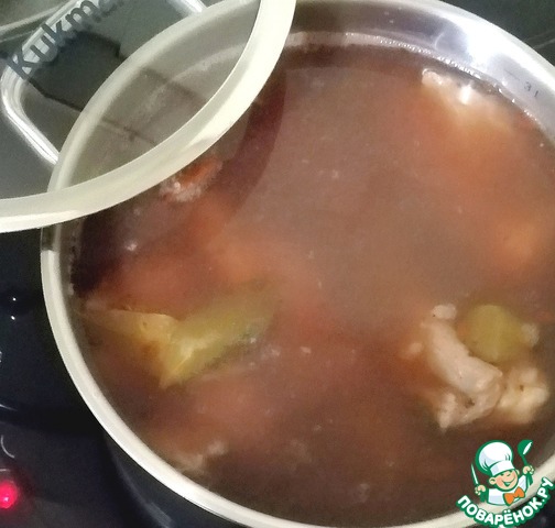 Выключила огонь, накрыла крышкой и оставила содержимое кастрюли остывать при комнатной t 24 часа.