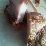 Теперь можно вынуть сало из рассола. Тщательно обсушила бумажными полотенцами, убрала с поверхности чаинки и прочие специи.